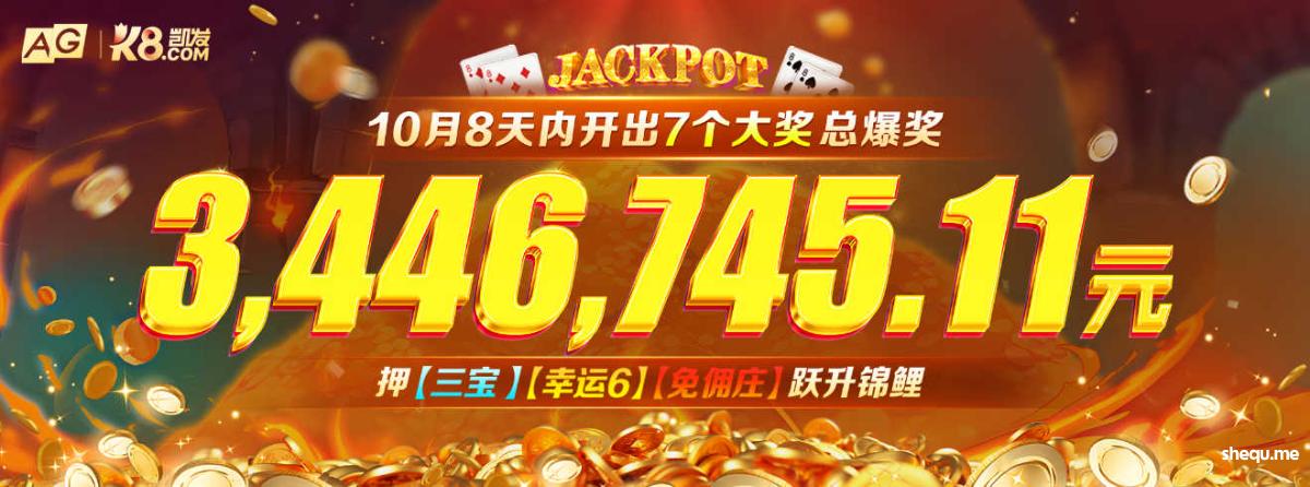 10月末AG百家乐奖池迎来连续爆奖,22日开出383,010.16元大奖,23日再爆免佣庄与幸运6大奖588,223.45元,26日凌晨4点再开出232,156.19元和大奖。大奖频出,参与者喜获巨额奖金,AG百家乐“三宝”玩法助你跃升锦鲤,体验暴富魅力。
