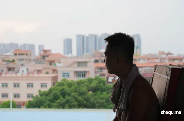“就像我们现在站的地方。”阿兴指了指堆满了瓷砖的毛坯房,敞开的墙体外面是映着落日的高楼大厦,“这一边是生活,那一边是梦想,能过上什么样的生活就看你的努力了。”
